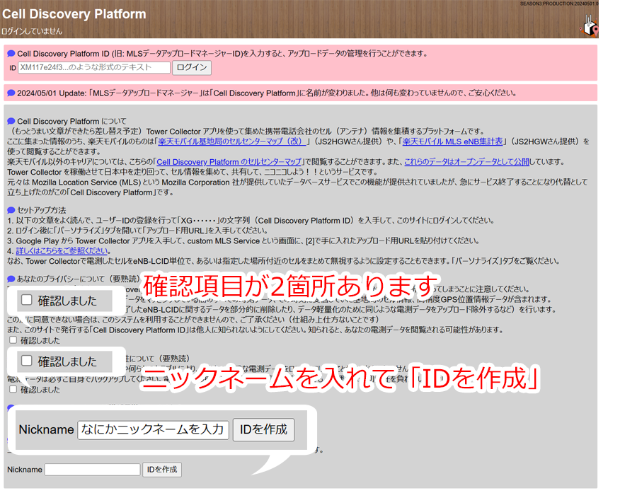 なお、この「Cell Discovery Platform」はドクオさん(X: @isogame) が個人運営しているサービスです。MLS管理表運営のJS2HGWさん(X: @js2hgw_gifu) とは問い合わせ先が異なりますのでご注意ください。