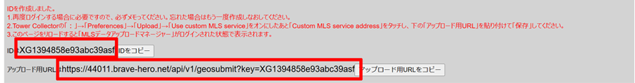 2.アップロード用のURLを「Tower Collector」の画面で入力